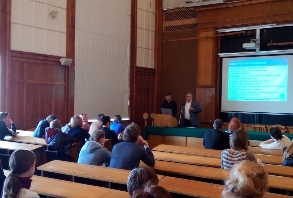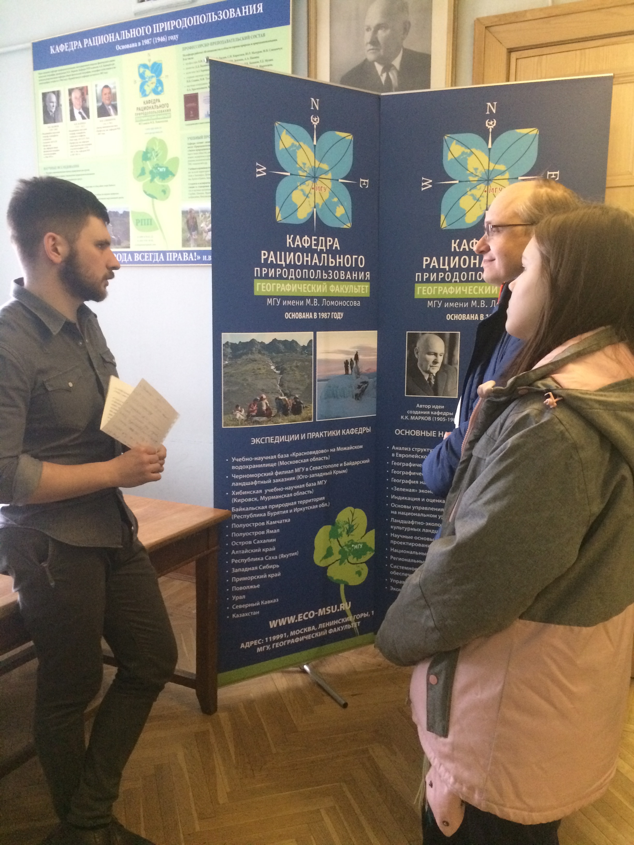 День открытых дверей![]() 24 марта на географическом факультете прошел День открытых дверей.Кафедра рационального природопользования также приняла в нем активное участие. Двери кафедры были гостеприимно открыты, на вопросы ребят и их родителей отвечали сотрудники кафедры Устьянцев А.В. и Энгельгардт А.Г. Заведующий кафедрой, профессор, доктор экономических наук Слипенчук Михаил Викторович во время представления направления "Экология и природопользование" в аудитории 1807 выступил перед будущими абитуриентами с презентацией, ознакомив их с историей создания и развития кафедры рационального природопользования, с основными направлениями обучения, новыми дисциплинами, рассказал о студенческих практиках, экспедициях, стажировках, о перспективах трудоустройства. В конце выступления он ответил на вопросы об особенностях обучения на кафедре.