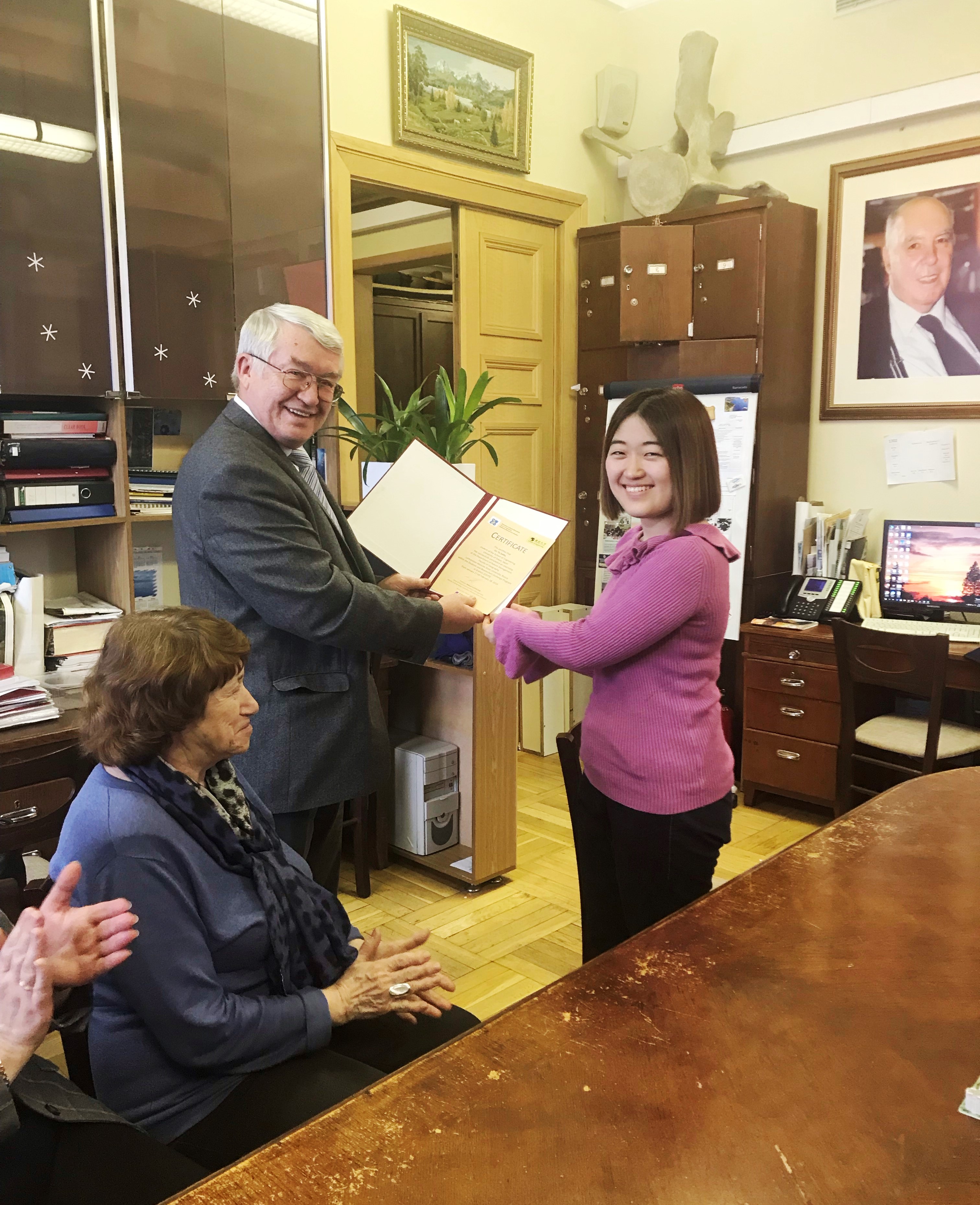 Завершение стажировки студентки Токийского университета![]() В конце февраля с.г. завершилась стажировка студентки факультета гражданского проектирования Токийского университета Ю Сайто (Yu Saito) на кафедре РПП. На заседании кафедры 25-го февраля стажерка сделала сообщение о результатах своего пребывания в МГУ. Презентация этого сообщения выложена на сайте кафедры. Своим выступлением и ответами на вопросы Ю Сайто еще раз продемонстрировала свою приверженность выбранной теме исследования и незаурядную работоспособность. За время своего пребывания она проделала внушительный объем работы, связанной с изучением урбанистических проблем Москвы в контексте их связи с историческим наследием города. Как следует из её сообщения, эта работа включала в себя обследование изучаемой территории с её фото- и видеофиксацией, посещение тематических музеев города, интервью с экспертами и посещение профильных организаций. Особенно ценной стала встреча в МАрхИ с академиком архитектуры, заведующим кафедрой современной архитектуры этого института, вице-президентом Академии архитектуры и строительных наук А.П. Кудрявцевым. Другая важная встреча для Ю Сайто была организована в Москомнаследии – важнейшей в сфере наследия структурой градостроительного комплекса города. Там она имела возможность детального общения по теме стажировки с известным теоретиком и практиком реставрации исторических памятников Ю. Логиновой – советником руководителя этой организации. В заключение своего выступления на кафедре стажерка тепло поблагодарила сотрудников кафедры, администрацию факультета и всех тех, кто способствовал успеху её пребывания в Москве. Особенно важными оказались ответы сотрудников кафедры на вопросы предложенной ею анкеты, за что была высказана искренняя признательность. Выступивший на заседании научный руководитель стажировки проф. кафедры Ю.Л. Мазуров отметил также искренний интерес японской студентки к историческому наследию России, выразившийся, в том числе, в посещении ею Санкт-Петербурга и Суздаля. Он же, от имени зав. кафедрой проф. М.В. Слипенчука, вручил Ю Сайто сертификат об успешном прохождении стажировки на кафедре РПП (на фото). Сейчас Ю Сайто благополучно возвратилась на родину и продолжает занятия в Токийском университете. А в Московском университете остались самые позитивные впечатления от пребывания здесь еще одной стажерки из партнерского вуза нашего дальневосточного соседа. Этому, в числе прочего, способствовало и её утверждение, представленное в презентации по итогам пребывания в России, о том, что подобные контакты полезны не только самим студентам, но и будут способствовать дружбе народов наших стран (в оригинале «… but also for the friendship between Russian and Japanese»). Соб. инф. |